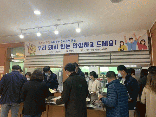[¹Ìµð¾îÀü³² Á¦°¥´ëÁ¾ ±âÀÚ] ¹«¾È±ºÀº Äڷγª19 ¹æ¿ª¾÷¹«·Î ¼ö°íÇÏ´Â °ø¹«¿øµéÀ» °Ý·ÁÇϰíÀÚ Çѵ·Çùȸ ¹«¾È±º³²ºÎÁöºÎ¿¡¼ Áö³ 12ÀÏ ¹«¾È±ºÃ»°ú ³ó¾÷±â¼ú¼¾ÅÍ ±¸³»½Ä´ç¿¡ µÅÁö°í±â 450kgÀ» Àü´ÞÇß´Ù°í ¹àÇû´Ù. ½Å±æ¿À Çѵ·Çùȸ ¹«¾È±º ¡¦
