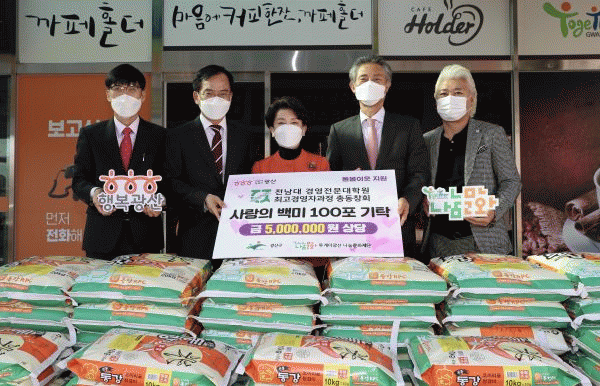 [¹Ìµð¾îÀü³² ±èÁ¤¿ì ±âÀÚ] Àü³²´ë °æ¿µÀü¹®´ëÇпø Ãѵ¿Ã¢È¸°¡ 12ÀÏ Ä£¼± °ñÇÁ´ëȸ¸¦ ±â³äÇÏ´Â ÃëÁö¿¡¼ Àú¼ÒµæÃþ¿¡ Àü´ÞÇØ ´Þ¶ó¸ç 500¸¸¿ø »ó´ç ½Ò 100Æ÷¸¦ ±¤»ê±¸¿¡ ¸Ã°å´Ù. Á¤±â¼· ȸÀåÀº ¡°Äڷγª19·Î ¿òÃ÷·ÁÀÖ´Â »çȸºÐÀ§±â¿Í ÀÌ¿ô¡¦