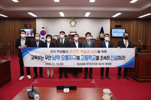 [¹Ìµð¾îÀü³² Á¦°¥´ëÁ¾ ±âÀÚ] ¹«¾È±ºÀÇȸ´Â Áö³ 10ÀÏ Á¦268ȸ Á¦2Â÷ Á¤·Êȸ Á¦1Â÷ º»È¸ÀÇ¿¡¼ ¡®¹«¾È ³²¾Ç¡¤¿À·æÁö±¸ °íµîÇб³ ½Å¼³ Ã˱¸ °ÇÀǾȡ¯À» äÅÃÇß´Ù. ÀÌÁ¤¿î ÀÇ¿øÀÌ ´ëÇ¥ ¹ßÀÇÇÑ °ÇÀǾÈÀº ½Åµµ½Ã °³¹ß °¡¼ÓÈ¿¡ µû¶ó ÇзÉÀα¸¡¦