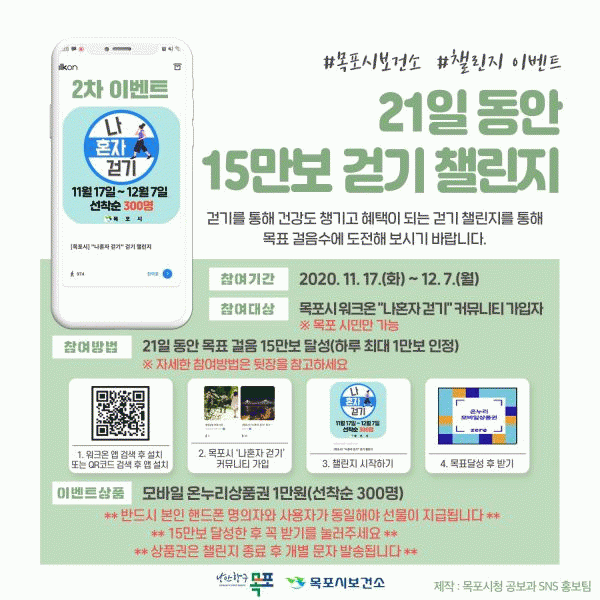 [¹Ìµð¾îÀü³² Á¦°¥´ëÁ¾ ±âÀÚ] ¸ñÆ÷½Ãº¸°Ç¼Ò¿¡¼´Â Äڷγª19 Àå±âÈ·Î ÀÎÇØ ½ÅüȰµ¿ÀÌ ºÎÁ·ÇÑ ½Ã¹ÎÀÇ °Ç°ÁõÁøÀ» À§ÇØ ºñ´ë¸é °Ç°ÇÁ·Î±×·¥¡®³ªÈ¥ÀÚ °È±â¡¯Ã§¸°Áö 2ȸÂ÷¸¦ ÁøÇàÇÑ´Ù. 2ȸÂ÷´Â 11¿ù 17ÀϺÎÅÍ 12¿ù 7ÀϱîÁö ÁøÇàÇÏ¸ç ±âÁ¸ ¡¦