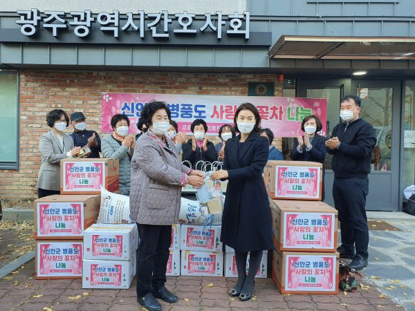 [¹Ìµð¾îÀü³² Á¦°¥´ëÁ¾ ±âÀÚ] ½Å¾È±ºÀÇ ÀÛÀº¼¶ Áõµµ¸é º´Ç³µµ ÁֹεéÀÌ Áö³ 10ÀÏ Äڷγª19 ±Øº¹¿¡ Çå½ÅÇÏ´Â ÀÇ·áÁøÀÇ ÁöÄ£ ¸ö°ú ¸¶À½À» À§·ÎÇϱâ À§ÇÑ ¸Çµå¶ó¹Ì ²ÉÂ÷ 100¼¼Æ®¸¦ ±¤ÁÖ±¤¿ª½Ã°£È£»çȸ¿¡ Àü´ÞÇß´Ù°í ¹àÇû´Ù. ƯÈ÷ À̹ø ²ÉÂ÷¡¦