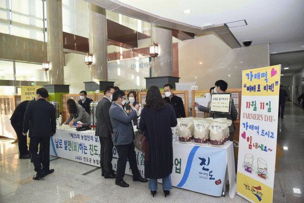 [¹Ìµð¾îÀü³² Á¦°¥´ëÁ¾ ±âÀÚ] Áøµµ±ºÀÌ ±ºÃ» Çö°ü¿¡¼ Áøµµ ½Ò ¼Òºñ ÃËÁøÀ» À§ÇØ ¡®°¡·¡¶± µ¥ÀÌ¡¯ Çà»ç¸¦ ÁøÇàÇß´Ù. ±ºÀº 11¿ù 11ÀÏ ³ó¹ÎµéÀÇ ±àÁö¿Í ÀںνÉÀ» °íÃë½ÃŰ°í ³ó¾÷ÀÇ Á߿伺À» µÇ»õ±â´Â ¹ýÁ¤ ±â³äÀÏÀÎ ¡®³ó¾÷ÀÎÀÇ ³¯¡¯À» ¸Â¾Æ¡¦
