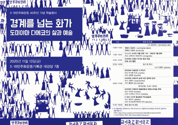 [¹Ìµð¾îÀü³² Á¦°¥´ëÁ¾ ±âÀÚ] 5¡¤18¹ÎÁÖȿ±â·Ï°üÀº ¿À´Â 13ÀÏ ¿ÀÀü 5¡¤18±â·Ï°ü ´Ù¸ñÀû°´ç¿¡¼ Ȱ¡ µµ¹Ì¾ß¸¶ ´Ù¿¡ÄÚÀÇ ÀÛǰÀ» ÀçÁ¶¸íÇÏ´Â Çмú´ëȸ¸¦ °³ÃÖÇÑ´Ù. ¡®°æ°è¸¦ ³Ñ´Â Ȱ¡: µµ¹Ì¾ß¸¶ ´Ù¿¡ÄÚÀÇ »î°ú ¿¹¼ú¡¯À̶ó´Â ÁÖÁ¦·Î ¡¦