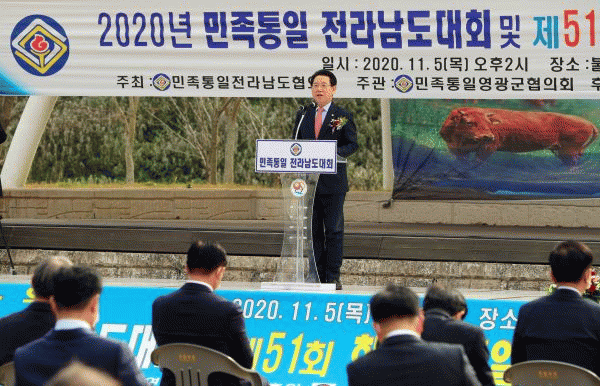 [¹Ìµð¾îÀü³² Á¦°¥´ëÁ¾ ±âÀÚ] ¹ÎÁ·ÅëÀÏ Àü¶ó³²µµÇùÀÇȸ´Â 5ÀÏ Çѹݵµ ÆòÈÅëÀÏÀ» ¿°¿øÇÑ 2020 ¹ÎÁ·ÅëÀÏ Àü³²µµ´ëȸ ¹× Á¦51ȸ ÇѹÎÁ· ÅëÀϹ®ÈÁ¦Àü ½Ã»ó½ÄÀ» °³ÃÖÇß´Ù. À̳¯ ¿µ±¤±º ºÒ°©»ç ¾ß¿Ü°ø¿¬Àå¿¡¼ ¿¸° ´ëȸ¿¡´Â ±è¿µ·Ï Àü¶ó³²µµ¡¦