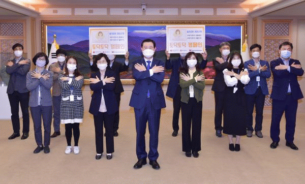 [¹Ìµð¾îÀü³² Á¦°¥´ëÁ¾ ±âÀÚ] À̿뼷 ±¤ÁÖ±¤¿ª½ÃÀåÀº 5ÀÏ ¿ÀÈÄ ½Ãû Á¢°ß½Ç¿¡¼ Á÷¿øµé°ú ÇÔ²² Äڷγªºí·ç ±Øº¹À» À§ÇÑ ¡®Åä´ÚÅä´Ú¡¯ Ä·ÆäÀο¡ µ¿ÂüÇß´Ù. ´ëÇÑÀû½ÊÀڻ翡¼ Àü±¹¹ÎÀ» ´ë»óÀ¸·Î ÆîÄ¡°í ÀÖ´Â ¡®Åä´ÚÅä´Ú¡¯ Ä·ÆäÀÎÀº Äڷγª¡¦