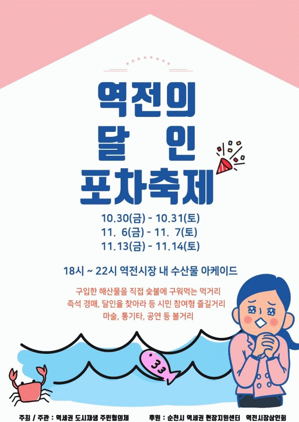 [¹Ìµð¾îÀü³² ÀüÇü¼º ±âÀÚ] ¼øÃµ½Ã°¡ ¿ª¼¼±Ç µµ½ÃÀç»ý»ç¾÷ÀÇ ÀÏȯÀ¸·Î ÁֹεéÀÌ Á÷Á¢ ±âȹÇÑ ½ÃÀå ÃàÁ¦ ¡®¿ªÀüÀÇ ´ÞÀÎ Æ÷Â÷ÃàÁ¦¡¯¸¦ °³ÃÖÇÑ´Ù. ¡®¿ªÀüÀÇ ´ÞÀÎ Æ÷Â÷ÃàÁ¦¡¯´Â 10¿ù 30ÀϺÎÅÍ 11¿ù 14ÀϱîÁö 3ÁÖ°£ ±Ý¡¤Åä¿äÀÏ¿¡ ¿ªÀü½ÃÀå ¼ö¡¦