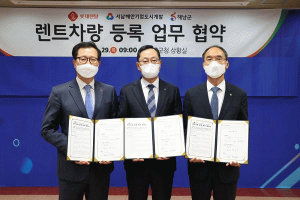 [¹Ìµð¾îÀü³² À±º¸Çö ±âÀÚ] ÇØ³²±ºÀº 29ÀÏ ±ºÃ» »óȲ½Ç¿¡¼ ·Ôµ¥·»Å», ¼³²Çؾȱâ¾÷µµ½Ã°³¹ß¿Í ·»Æ® Â÷·® µî·Ï ¾÷¹«Çù¾àÀ» ü°áÇß´Ù. À̳¯ Çù¾à½Ä¿¡´Â ¸íÇö°ü ÇØ³²±º¼ö¿Í À̽¿¬ ·Ôµ¥·»Å» °æ¿µ°ü¸®º»ºÎÀå, Á¤°Ç±â¼³²Çؾȱâ¾÷µµ½Ã°³¹ß ¡¦