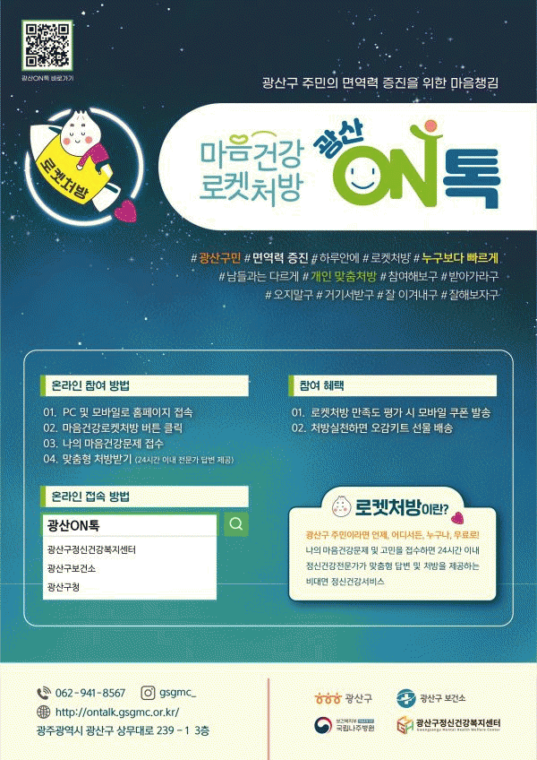 [¹Ìµð¾îÀü³² ±èÁ¤¿ì ±âÀÚ] ½Ã¹Î ´©±¸³ª ¾ðÁ¦µç ¿Â¶óÀÎÀ¸·Î ¸¶À½°í¹ÎÀ» ÀÛ¼ºÇϸé, 24½Ã°£ À̳»¿¡ Á¤½Å°Ç°Àü¹®°¡°¡ ¸ÂÃãÇü ó¹æÀ» ÇØÁØ´Ù. ±¤»ê±¸°¡ ½Ã¹ÎÀÇ Á¤½Å°Ç° ¸é¿ª·Â ÁõÁøÀ» µ½´Â ¡®¸¶À½°Ç° ·ÎÄÏó¹æ Ç÷§Æû ±¤»êONÅ塯À» ±¸ÃàÇÏ¡¦