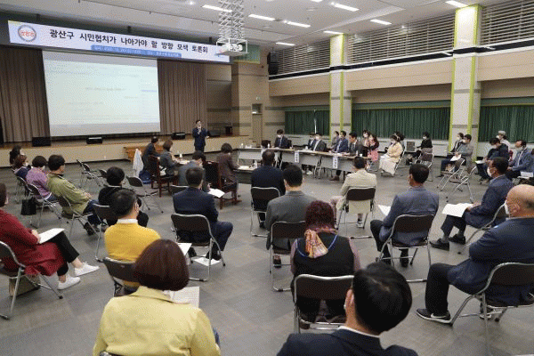 [¹Ìµð¾îÀü³² ±èÁ¤¿ì ±âÀÚ] ±¤»ê±¸°¡ 28ÀÏ ±¸Ã» À±»ó¿øÈ¦¿¡¼ ¿Â¡¤¿ÀÇÁ¶óÀÎ Åä·Ðȸ ¡®±¤»ê±¸ÀÇ ½Ã¹ÎÇùÄ¡°¡ ³ª¾Æ°¡¾ß ÇÒ ¹æÇâ°ú ÁöÇâÁ¡¡¯À» °³ÃÖÇß´Ù. À̳¯ Åä·Ðȸ´Â »çȸ¹®Á¦ ÇØ°áÀÇ »õ·Î¿î ¹æÇâÀ¸·Î ½Ã¹ÎÇùÄ¡°¡ °Á¶µÇ°í ÀÖ´Â ½Ã´ëÀû È塦