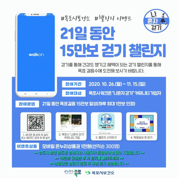 [¹Ìµð¾îÀü³² Á¦°¥´ëÁ¾ ±âÀÚ] ¸ñÆ÷½Ã º¸°Ç¼Ò¿¡¼´Â Äڷγª19 Àå±âÈ·Î ½ÅüȰµ¿ÀÌ ºÎÁ·ÇØÁø ½Ã¹ÎÀÇ °Ç°ÁõÁøÀ» À§ÇØ ºñ´ë¸é °Ç°ÇÁ·Î±×·¥ÀÎ ¡®³ªÈ¥ÀÚ °È±â¡¯Ã§¸°Áö¸¦ ¿î¿µ ÇÑ´Ù. À̹ø 縰Áö´Â µÎ ¹ø¿¡ °ÉÃÄ ÁøÇàÇϸç 1ȸÂ÷´Â 10¿ù 26ÀϺΡ¦