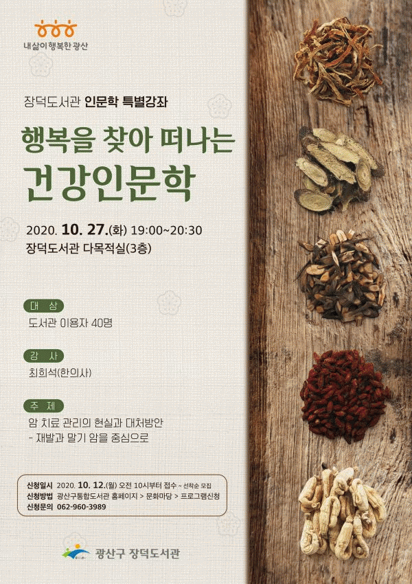 [¹Ìµð¾îÀü³² ±èÁ¤¿ì ±âÀÚ] ±¤»ê±¸¸³ Àå´öµµ¼°üÀÌ ¿À´Â 27ÀÏ ÃÖÈñ¼® ÀÚ¿¬±×¸°Çѹ溴¿øÀåÀ» ÃÊÃ»ÇØ ¡®ÇູÀ» ã¾Æ ¶°³ª´Â °Ç°Àι®ÇС¯ °¿¬À» ¿¬´Ù. ¡®¾Ï Ä¡·á °ü¸®ÀÇ Çö½Ç°ú ´ëó¹æ¾È¡¯À» ÁÖÁ¦·Î ÇÑ À̹ø °¿¬Àº, ¾Ï¿¡ ´ëÇÑ °ü½É°ú ÀÌ¡¦