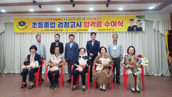 [¹Ìµð¾îÀü³² ÀüÇü¼º ±âÀÚ] Áö³ 16ÀÏ ¿©¼ö½Ã ½ÖºÀÁ¾ÇÕ»çȸº¹Áö°ü¿¡¼´Â Ãʵî°ËÁ¤°í½Ã¿¡ ÇÕ°ÝÇÑ ÇÕ°ÝÀÚ 5¸íÀ» ÃàÇÏÇÏ´Â ÇÕ°ÝÁõ¼ ¼ö¿©½ÄÀÌ ¿·È´Ù. ½ÖºÀÁ¾ÇÕ»çȸº¹Áö°üÀº Áö³ 5¿ùºÎÅÍ ±ÝÈ£¹Ì¾²ÀÌÈÇÐ ÈÄ¿øÀ¸·Î 50¼¼ ÀÌ»ó ÃʵîÇб³ Á¹¾÷¡¦
