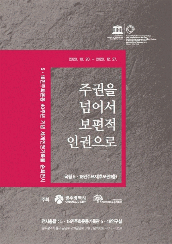 [¹Ìµð¾îÀü³² Á¦°¥´ëÁ¾ ±âÀÚ] 5¡¤18¹ÎÁÖȿ±â·Ï°üÀº ¿À´Â 20ÀÏ 5¡¤18¹ÎÁÖȿ 40Áֳ⠴ë¹Ì¸¦ Àå½ÄÇÏ´Â ¼¼°èÀαDZâ·Ï¹° ¼øÈ¸Àü½Ã ¡®ÁÖ±ÇÀ» ³Ñ¾î¼ º¸ÆíÀû ÀαÇÀ¸·Î¡¯¸¦ ±¹¸³5¡¤18¹ÎÁÖ¹¦Áö ³» Ã߸ð°ü 3Ãþ¿¡¼ °³¸·ÇÑ´Ù. 12¿ù27ÀϱîÁö¡¦