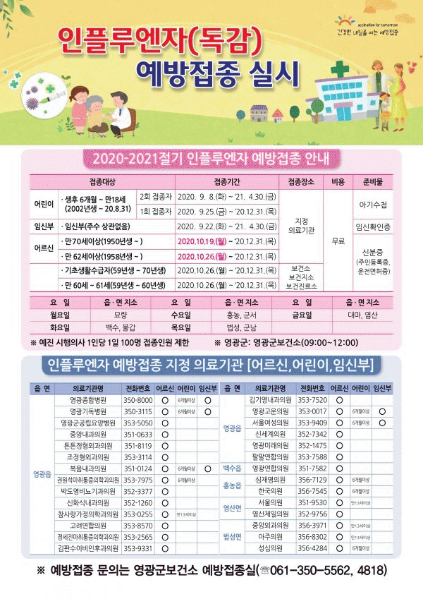[¹Ìµð¾îÀü³² Á¦°¥´ëÁ¾ ±âÀÚ] ¿µ±¤±ºÀº 2020-2021Àý±â ÀÎÇ÷翣ÀÚÀÇ À¯Çà°ú Äڷγª19 µ¿½Ã À¯Çà¿¡ ´ëºñÇØ ¹«·á ¿¹¹æÁ¢Á¾À» ½Ç½ÃÇÑ´Ù°í ¹àÇû´Ù. 10. 13.ºÎÅÍ ¸¸ 13~18¼¼ ÀÌÇÏ ´ë»óÀ¸·Î ¸ÕÀú ½ÃÀÛÇÏ¸ç ¾î¸£½ÅÀº 10. 19.ºÎÅÍ ¸¸ 70¼¼ ÀÌ»ó, ¡¦
