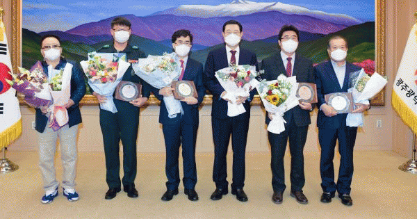 [¹Ìµð¾îÀü³² Á¦°¥´ëÁ¾ ±âÀÚ] ±¤ÁÖ±¤¿ª½Ã´Â 6ÀÏ ¿ÀÀü ½Ãû ºñÁî´Ï½º·ë¿¡¼ ÀÓ´ë·á ÀÎÇÏ, ¹æ¿ª µî À糱غ¹¿¡ ¾ÕÀå ¼± À¯°ø½Ã¹Î 5¸í¿¡°Ô ǥâÀ» ¼ö¿©Çß´Ù. ±¤ÁÖ½ÃÀå»óÀ» ¹ÞÀº ¾çµ¿º¹°³»ó°¡ ÀÓ´ëÀÎ À̻󸸾¾´Â Äڷγª19·Î °æÁ¦Àû ¾î·Á¿òÀ»¡¦