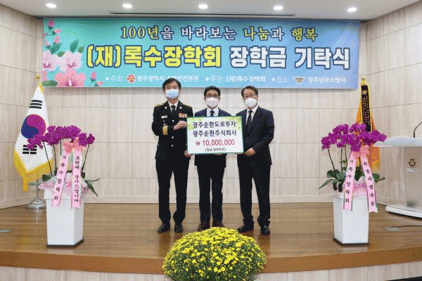 [¹Ìµð¾îÀü³² Á¦°¥´ëÁ¾ ±âÀÚ] ±¤ÁÖ±¤¿ª½Ã ¼Ò¹æ¾ÈÀüº»ºÎ´Â 6ÀÏ ³²ºÎ¼Ò¹æ¼¿¡¼ ±¤ÁÖ¼øÈ¯µµ·ÎÅõÀڢߡ¤±¤ÁÖ¼øÈ¯¢ß¿Í ¼Ò¹æÀåÇбâ±Ý ±âʽÄÀ» °¡Á³´Ù. ±¤ÁÖ¼øÈ¯µµ·ÎÅõÀڢߡ¤±¤ÁÖ¼øÈ¯¢ß´Â À̳¯ Àç´Ü¹ýÀÎ ·Ï¼öÀåÇÐȸ¿¡ 1000¸¸¿øÀÇ ÈÄ¿ø±ÝÀ» Àü¡¦