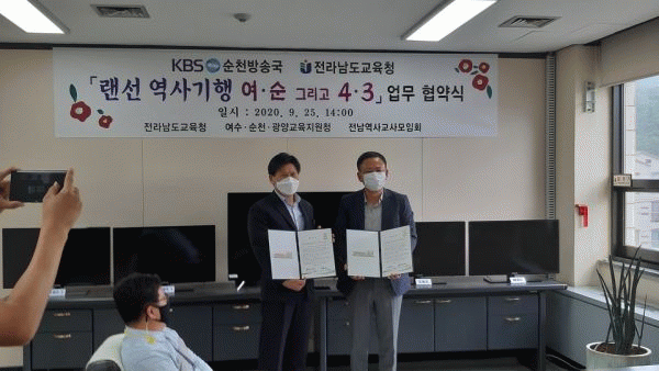 [¹Ìµð¾îÀü³² Á¦°¥´ëÁ¾ ±âÀÚ] Àü¶ó³²µµ±³À°Ã»ÀÌ 9¿ù 25ÀÏ KBS¼øÃµ¹æ¼Û±¹¿¡¼ Áö¿ª»ç ±³À° °È¸¦ À§ÇÑ ¾÷¹«Çù¾àÀ» ü°áÇß´Ù. À̹ø Çù¾àÀ¸·Î KBS¼øÃµ´Â Á¶¸¸°£¡®·£¼± ¿ª»ç±âÇà ¿©¡¤¼ø ±×¸®°í 4¡¤3¡¯À̶ó´Â ÁÖÁ¦·Î UCC ¿ª»ç±âÇà ±³À°ÀڷḦ¡¦