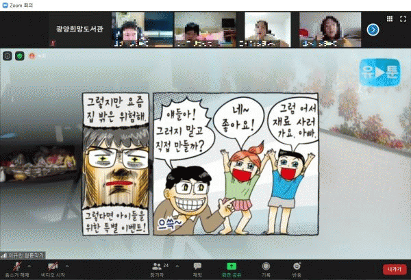 [¹Ìµð¾îÀü³² ÀüÇü¼º ±âÀÚ] ±¤¾çÈñ¸Áµµ¼°üÀº Áö³ 20ÀÏ ZOOMÀ» Ȱ¿ëÇØ ¾î¸°ÀÌ 20¿©¸í°ú À̱ÔÂù À¥Å÷ ÀÛ°¡°¡ ¿Â¶óÀο¡¼ ÇÔ²²ÇÏ´Â ½Ã°£À» °¡Á³´Ù°í ¹àÇû´Ù. Çà»ç´Â ¿äÁò ¾î¸°À̵鿡°Ô ÀαⰡ ³ôÀº À¥Å÷ ÀÛ°¡ Á÷¾÷¿¡ ´ëÇØ ¾Ë¾Æº¸°í µ¶¼ À¥¡¦