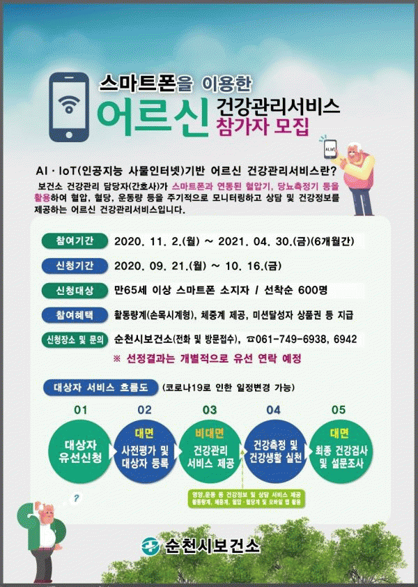 [¹Ìµð¾îÀü³² ÀüÇü¼º ±âÀÚ] ¼øÃµ½Ã´Â º¸°Çº¹ÁöºÎ ÁÖ°ü ¡®2020³â AI¡¤IoT±â¹Ý ¾î¸£½Å °Ç°°ü¸® ¼ºñ½º¡¯°ø¸ð»ç¾÷¿¡ ¼±Á¤µÇ¾î Äڷγª19·Î ÀÎÇØ ´õ¿í Çʿ伺ÀÌ ´ëµÎµÇ°í ÀÖ´Â ºñ´ë¸é ¾î¸£½Å °Ç°°ü¸® »ç¾÷À» ½ÃÇàÇÑ´Ù. ¡®2020³â AI¡¤IoT±â¹Ý¡¦