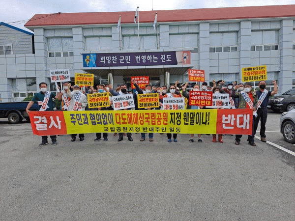 [¹Ìµð¾îÀü³² Á¦°¥´ëÁ¾ ±âÀÚ] ´ÙµµÇØÇػ󱹸³°ø¿ø¿¡ ¼ÓÇÑ Áøµµ±º ÁֹεéÀÌ ±¹¸³°ø¿ø ÇØÁ¦¸¦ ¿ä±¸Çϰí ÀÖÁö¸¸ ±¹¸³°ø¿ø°ø´ÜÃøÀº ¿ÀÈ÷·Á 356ha¸¦ Ãß°¡ ÁöÁ¤ÇÒ ¿òÁ÷ÀÓÀ» º¸À̰í ÀÖ¾î Áøµµ±º¹ÎµéÀÌ Å©°Ô ¹Ý¹ßÇϰí ÀÖ´Ù. ȯ°æºÎ°¡ 10³â ¸¸¿¡ ±¹¡¦