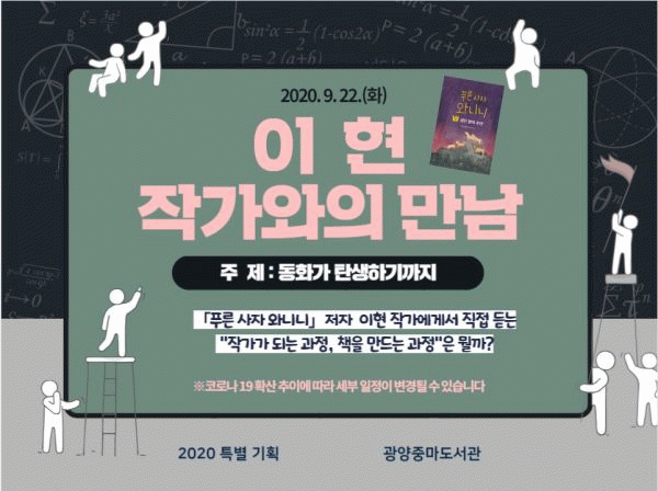 [¹Ìµð¾îÀü³² ÀüÇü¼º ±âÀÚ] ±¤¾çÁ߸¶µµ¼°üÀº 2Çб⠰³ÇÐÀ» ¸ÂÀº ¹é¿îÃʵîÇлý 6Çг⠾À̵éÀ» ´ë»óÀ¸·Î ¿À´Â 22ÀÏ 10½Ã ¡®9¿ù µ¶¼ÀÇ ´Þ Ưº° ±âȹ ÀÛ°¡¿ÍÀÇ ¸¸³²¡¯À» ¿î¿µÇÑ´Ù°í ¹àÇû´Ù. À̹ø °¿¬Àº ¡®ÇÑ Çбâ ÇÑ Ã¥ Àб⡯ ¼ö¾÷¿¡¼¡¦