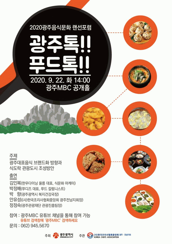 [¹Ìµð¾îÀü³² Á¦°¥´ëÁ¾ ±âÀÚ] ±¤ÁÖ±¤¿ª½Ã´Â ¿À´Â 22ÀÏ ¡®2020 ±¤ÁÖÀ½½Ä¹®ÈÆ÷·³¡¯À» ½ºÆ®¸®¹Ö ¹æ½ÄÀÇ ºñ´ë¸é ¿Â¶óÀÎÀ¸·Î °³ÃÖÇÑ´Ù. À̹ø Æ÷·³Àº ¡®±¤ÁÖ´ëÇ¥À½½Ä ºê·£µåÈ ¹× ½Äµµ¶ô °ü±¤µµ½Ã Á¶¼º ¹æ¾È¡¯À» ÁÖÁ¦·Î ÁøÇàµÇ¸ç ¹ÚÇâ ±¤Áֽá¦