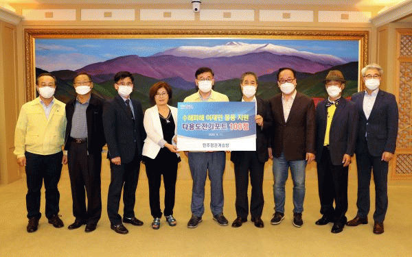 [¹Ìµð¾îÀü³² Á¦°¥´ëÁ¾ ±âÀÚ] Áö¿ª SNS ¸ðÀÓ ¡®¹ÎÁÖÁ¤±Ç°è½Â¹æ¡¯ÀÌ ÁýÁßÈ£¿ì·Î ÇÇÇØ¸¦ ÀÔÀº µ¿¡¤³²±¸ ¼öÀç¹ÎÀ» À§ÇØ ´Ù¿ëµµ Àü±âÆ÷Æ® 100°³¸¦ ±¤ÁÖ±¤¿ª½Ã¿¡ Àü´ÞÇß´Ù. ±¤Áֽô 11ÀÏ ¿ÀÈÄ ½Ãû ºñÁî´Ï½º·ë¿¡¼ ¹ÎÁÖÁ¤±Ç°è½Â¹æ°ú ¼öÇØ ÀÇ¡¦