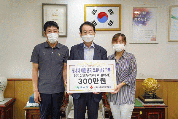 [¹Ìµð¾îÀü³² Á¦°¥´ëÁ¾ ±âÀÚ] ¢ß»ïÀϹ«¿ª ±è¾ÖÀÚ ´ëÇ¥´Â Áö³ 7ÀÏ Äڷγª À§±â ±Øº¹À» À§ÇØ Çö±Ý 300¸¸¿øÀ» Àü³² »çȸº¹Áö°øµ¿¸ð±Ýȸ¸¦ ÅëÇØ ¸ñÆ÷½Ã¿¡ ÁöÁ¤±âŹ Çß´Ù. »ïÀϹ«¿ªÀº ¾ÆÆÄÆ®, °øµ¿ÁÖÅôÜÁö µî¿¡¼ Çå¿ÊÀ» ¼ö°ÅÇØ µ¿³²¾Æ, ¾Æ¡¦