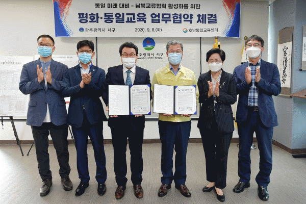 [¹Ìµð¾îÀü³² ±èÁ¤¿ì ±âÀÚ] ±¤ÁÖ ¼±¸´Â 8ÀÏ È£³²ÅëÀϱ³À°¼¾ÅÍ¿Í ÅëÀϱ³À° Ȱ¼ºÈ µîÀ» À§ÇÑ ¾÷¹«Çù¾àÀ» ü°áÇß´Ù. À̹ø ¾÷¹«Çù¾àÀº ¼´ë¼® ±¸Ã»ÀåÀÌ ¹Î¼±7±â °ø¾àÀ¸·Î Á¦½ÃÇÑ ³²ºÏ±³·ù ±â¹Ý Á¶¼º°ú ³²ºÏ±³·ùÇù·Â»ç¾÷ÀÇ È°¼ºÈ¸¦ À§ÇØ ¸¶¡¦