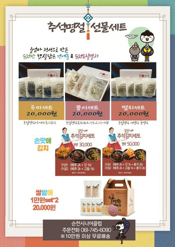 [¹Ìµð¾îÀü³² ÀüÇü¼º ±âÀÚ] ¼øÃµ½Ã´Ï¾îŬ·´¿¡¼´Â ÇÑ´Þ ¾ÕÀ¸·Î ´Ù°¡¿Â Ãß¼®À» ¸Â¾Æ ¼±¹°¼¼Æ® ÆÇ¸Å¸¦ ½ÃÀÛÇÑ´Ù. ³²ÇØ¾È Ã»Á¤Áö¿ª¿¡¼ »ý»êµÈ °Ç¾î¹°À» ¾ö¼±ÇØ ¸Ô±â ÁÁ°Ô ¼ÕÁúÇØ ¼ÒÆ÷ÀåÇÑ 3Á¾ ¼±¹°¼¼Æ®¿Í ³²³à³ë¼Ò ÀÔ¸À¿¡ ¸Â°Ô ±¸¼ºÇÑ ¹èÃß¡¦