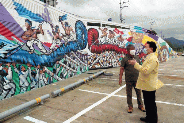 [¹Ìµð¾îÀü³² Á¦°¥´ëÁ¾ ±âÀÚ] ÀåÈﱺÀ» °¡·ÎÁö¸£´Â ŽÁø°°¡·Î ÇüÇü»ö»öÀÇ ÀåÈï°í½Î¿ò º®È°¡ ±×·ÁÁ® ´«±æÀ» ²ø°í ÀÖ´Ù. ŽÁø° ¼Æí¿¡ ±×·ÁÁø ÀÌ ±×¸²Àº 150³â ÀüÅëÀÇ ÀåÈï°í½Î¿òÀ» ¹¦»çÇß´Ù. ÀåÈï°í½Î¿òÀº 1872³â dz³âÀ» ±â¿øÇÏ´Â ÃàÁ¦¡¦