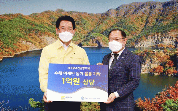 [¹Ìµð¾îÀü³² Á¦°¥´ëÁ¾ ±âÀÚ] Àü¶ó³²µµ´Â 31ÀÏ Àç°æ±¤ÁÖÀü³²Çâ¿ìȸ°¡ ÁýÁßÈ£¿ì·Î ¾î·Á¿òÀ» °ÞÀº °íÇâ¿¡ Èñ¸Á°ú ¿ë±â¸¦ Àü´ÞÇϱâ À§ÇØ ¼öÇØº¹±¸ Áö¿ø¹°Ç°À» Àü´ÞÇß´Ù°í ¹àÇû´Ù. À̳¯ ÃÖ´ë±Ô Àç°æ±¤ÁÖÀü³²Çâ¿ìȸÀå°ú ÀåÆò¿¡¤°À±¼º¡¤¾ç±¤¿ë¡¦