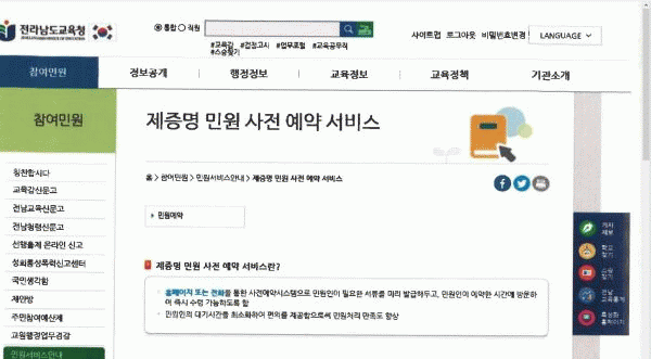[¹Ìµð¾îÀü³² Á¦°¥´ëÁ¾ ±âÀÚ] Àü¶ó³²µµ±³À°Ã»ÀÌ Á¦Áõ¸í ¹ß±Þ ¹Î¿øÀÎÀÇ ÆíÀǸ¦ À§ÇØ ¿À´Â 9¿ù 1ÀϺÎÅÍ ¹Î¿ø »çÀü¿¹¾à ¼ºñ½º¸¦ °íµµÈÇÑ´Ù. Àü¶ó³²µµ±³À°Ã»¿¡ µû¸£¸é, Áö±Ý±îÁö Á¦Áõ¸í ¹Î¿ø »çÀü¿¹¾à ¼ºñ½º´Â Àüȸ¦ ÅëÇØ¼¸¸ ÀÌ·ïÁ³´Âµ¥¡¦