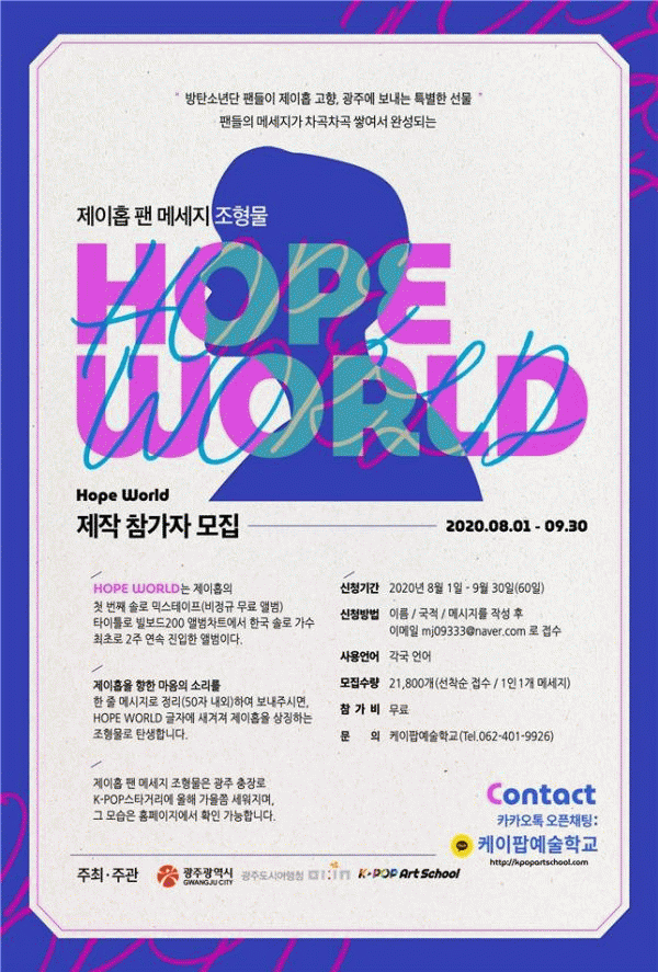 [¹Ìµð¾îÀü³² Á¦°¥´ëÁ¾ ±âÀÚ] ±¤ÁÖ±¤¿ª½Ã¿¡ ¹æÅº¼Ò³â´Ü ¸â¹ö Á¦ÀÌÈ©ÀÇ ÆÒ ¸Þ½ÃÁö¸¦ ´ãÀº Á¶Çü¹° ¡®È© ¿ùµå¡¯°¡ µé¾î¼±´Ù. ¡®HOPE WORLD¡¯´Â Á¦ÀÌÈ©ÀÇ Ã¹ ¹øÂ° ¼Ö·Î ¹Í½ºÅ×ÀÌÇÁ ŸÀÌÆ²·Î ºôº¸µå200 ¾Ù¹üÂ÷Æ®¿¡¼ Çѱ¹ ¼Ö·Î °¡¼ö ÃÖÃÊ·Î 2¡¦