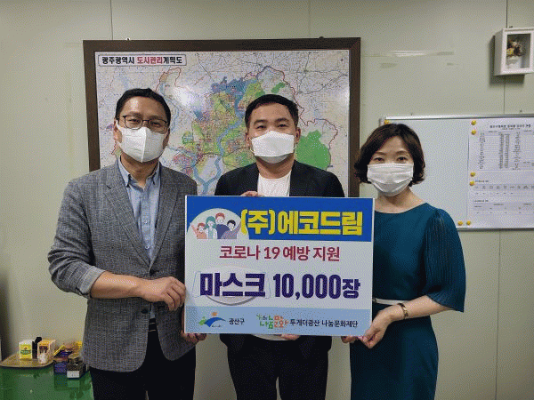 [¹Ìµð¾îÀü³² ±èÁ¤¿ì ±âÀÚ] 21ÀÏ ±¤ÁÖ±¤¿ª½Ã Çϳ²»ê´ÜÀÇ ¸¶½ºÅ© »ý»ê¾÷ü ¢ß¿¡Äڵ帲°¡ ¸¶½ºÅ© 1¸¸¸Å¸¦ ±¤»ê±¸¿¡ ±âŹÇß´Ù. ¹Ú±ÇÇö ¢ß¿¡Äڵ帲 ´ëÇ¥ÀÌ»ç´Â ¡°Äڷγª19·ÎºÎÅÍ ¾ÈÀüÇÑ Áö¿ª»çȸ¸¦ ¸¸µå´Âµ¥ Á¶±ÝÀ̳ª¸¶ º¸ÅÆÀÌ µÇ°íÀÚ ¸¶½ºÅ©¡¦