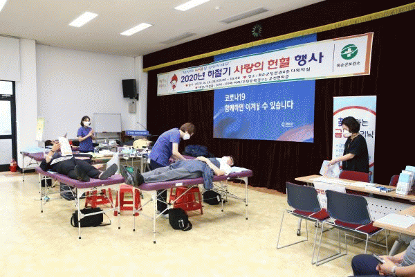 [¹Ìµð¾îÀü³² Á¦°¥´ëÁ¾ ±âÀÚ] ȼø±ºÀÌ Äڷγª19 À§±â ±Øº¹À» À§ÇÑ '»ç¶ûÀÇ ÇåÇ÷ Çà»ç'¸¦ ¼ºÈ²¸®¿¡ ¸¶ÃÆ´Ù. ÇåÇ÷ Çà»ç´Â Áö³ 18ÀÏ ¿ÀÀü 9½ÃºÎÅÍ ¿ÀÈÄ 4½Ã±îÁö ±ºÃ» º»°ü 4Ãþ ´Ù¸ñÀû½Ç°ú °Ç°µå¸²¼¾ÅÍ ÁÖÂ÷Àå ÀÏ´ë¿¡¼ ÁøÇàµÆ´Ù. ±º°ú ¡¦