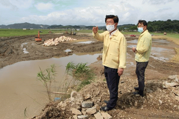 [¹Ìµð¾îÀü³² ¹Úº¹»ê ±âÀÚ] °ÀÎ±Ô ³ªÁÖ½ÃÀåÀº 12ÀÏ ´Ù½Ã¸é ¹®Æòõ Çѳ»±³ Àα٠Á¦¹æ º¹±¸ ÇöÀåÀ» ¹æ¹®ÇØ °ø»ç ÃßÁø »óȲÀ» Á¡°ËÇÏ°í °ü°èÀÚµéÀÇ ³ë°í¸¦ °Ý·ÁÇß´Ù. ¹®Æòõ Á¦¹æÀº Áö³ ÁÖ ÃÖ´ë 400mm°¡ ³Ñ´Â Æø¿ì·Î ºÒ¾î³ ¿µ»ê°¹°À» ÀÌ¡¦