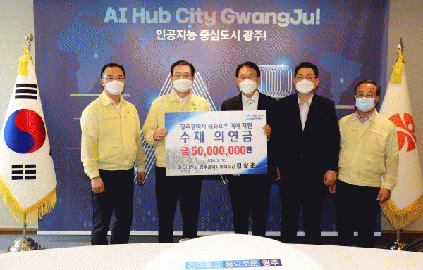 [¹Ìµð¾îÀü³² Á¦°¥´ëÁ¾ ±âÀÚ] ±èâÁØ ±¤ÁÖ±¤¿ª½ÃüÀ°È¸ÀåÀÌ 12ÀÏ ¿ÀÈÄ ±¤ÁÖ½Ãû¿¡¼ ¿¸° ¼öÇØ ¼º±Ý ±âŹ½Ä¿¡¼ ¼öÇØ º¹±¸¸¦ À§ÇØ ½á´Þ¶ó¸ç ¼º±Ý 5000¸¸¿øÀ» ±âŹÇß´Ù. ±èâÁØ ½ÃüÀ°È¸ÀåÀº ¡°±â·ÏÀûÀÎ Æø¿ì·Î ÇÇÇØ¸¦ ÀÔÀº ¼öÀç¹ÎµéÀ» µ½¡¦