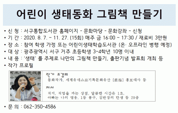 [¹Ìµð¾îÀü³² ±èÁ¤¿ì ±âÀÚ] ±¤ÁÖ ¼±¸ ¾î¸°ÀÌ»ýÅÂÇнÀµµ¼°üÀÌ ¼±¸ °ü³» ¾î¸°À̸¦ ´ë»óÀ¸·Î ¡®¾î¸°ÀÌ »ýŵ¿È ±×¸²Ã¥ ¸¸µé±â¡¯ ÇÁ·Î±×·¥ Âü¿©ÀÚ¸¦ ¸ðÁýÇÑ´Ù. ¡®¾î¸°ÀÌ »ýŵ¿È ±×¸²Ã¥ ¸¸µé±â¡¯´Â ȯ°æ¿À¿°ÀÇ ½É°¢¼º°ú »ýÅÂ°è º¸Á¸ÀÇ ÇÊ¡¦