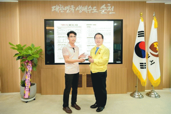 [¹Ìµð¾îÀü³² Á¦°¥´ëÁ¾ ±âÀÚ] ¼øÃµ¹®ÈÀç´ÜÀº 27ÀÏ ¹®È¿¹¼ú ¹ßÀüÀ» À§ÇØ 100¸¸¿øÀ» ±âºÎÇÑ ¼øÃµ¹®ÈÀç´Ü ÃÖÃÊ °³ÀαâºÎÀÚÀÎ Á¤±¤È£¾¾¿¡°Ô °¨»çÆÐ¸¦ Àü´ÞÇß´Ù. öµµ°ø»ç¿¡ ÀçÁ÷ ÁßÀÎ Á¤±¤È£¾¾´Â ¡°2013³â ¼øÃµ¿ª¿¡¼ ¡®Çײۿ¡ Áñ±â´Â ¾Æ¡¦