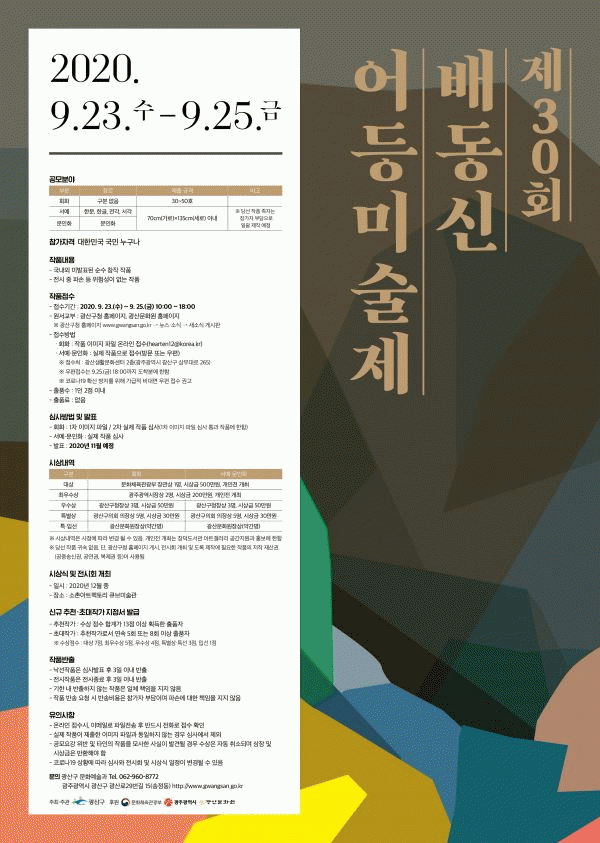 [¹Ìµð¾îÀü³² ±èÁ¤¿ì ±âÀÚ] ±¤ÁÖ ±¤»ê±¸°¡ Áö¿ª Ãâ½Å ¹èµ¿½Å ȹéÀ» ±â³äÇÏ°í ¹Ì¼úÀÎÀç ¹ß±¼°ú âÀÛȰµ¿ ±âȸ Á¦°ø µîÀ» ÃëÁö·Î ¡®Á¦30ȸ ¹èµ¿½Å ¾îµî¹Ì¼úÁ¦¡¯¸¦ °³ÃÖÇÑ´Ù. °ø¸ð¿¡´Â ´ëÇѹα¹ ±¹¹Î ´©±¸³ª Âü¿©ÇÒ ¼ö ÀÖ°í ºÐ¾ß´Â È¸È¡¤¡¦