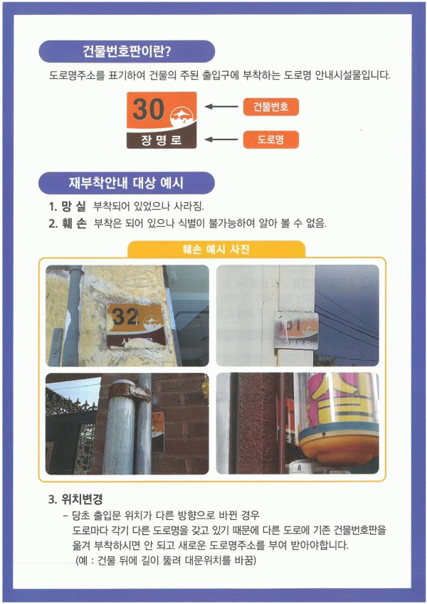 [¹Ìµð¾îÀü³² Á¦°¥´ëÁ¾ ±âÀÚ] ¼øÃµ½Ã´Â °Ç¹°¹øÈ£ÆÇ ¸Á½ÇµÇ°Å³ª ÈÑ¼ÕµÈ °Ç¹°¹øÈ£ÆÇÀ» ÀçºÎÂøÇϵµ·Ï ¾È³»¹®À» ÇöÀå¿¡¼ ¹èºÎÇϰí ÀÖ´Ù. 2014³âºÎÅÍ ¼³Ä¡µÈ °Ç¹°¹øÈ£ÆÇÀº ÈѼÕÀ̳ª ¸Á½Ç, Àç°ÇÃà ÈÄ ¹ÌºÎÂø µîÀÇ »çÀ¯·Î Á¤ºñ°¡ ÇÊ¿äÇÑ »óȲÀÌ¡¦