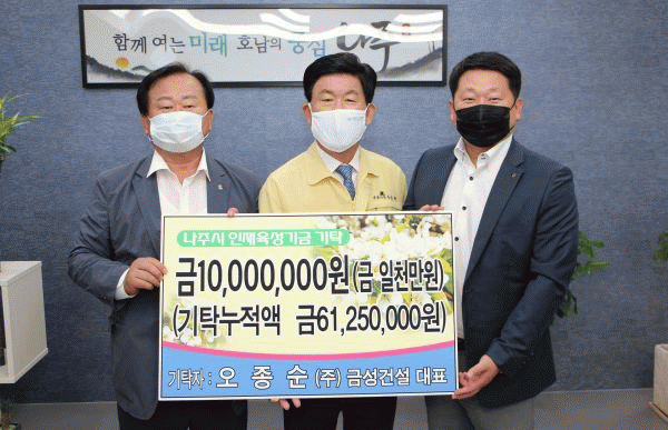 [¹Ìµð¾îÀü³² ¹Úº¹»ê ±âÀÚ] ³ªÁֽô ¢ß±Ý¼º°Ç¼³¿¡¼ ÀÎÀçÀ°¼º±â±Ý 1000¸¸¿øÀ» ³ªÁÖ±³À°ÁøÈïÀç´Ü¿¡ ±âŹÇß´Ù°í 7ÀÏ ¹àÇû´Ù. ¿ÀÁ¾¼ø ´ëÇ¥´Â ¡°¿ì¸® Áö¿ª ¿ì¼öÇÑ ÀÎÀçµéÀÌ °æÁ¦Àû »çÁ¤À¸·Î Èñ¸ÁÀ» ÀÒ´Â ÀÏÀÌ ¾øµµ·Ï Á¶±ÝÀ̳ª¸¶ º¸ÅÆÀÌ µÇ¡¦