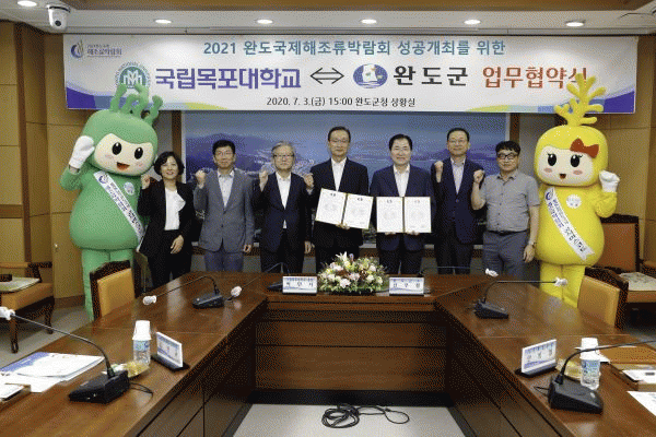 [¹Ìµð¾îÀü³² Á¦°¥´ëÁ¾ ±âÀÚ] ¿Ïµµ±ºÀº Áö³ 3ÀÏ ¸ñÆ÷´ëÇб³¿Í 2021¿Ïµµ±¹Á¦ÇØÁ¶·ù¹Ú¶÷ȸ ¼º°ø °³ÃÖ¸¦ À§ÇÑ ¾÷¹« Çù¾àÀ» ü°áÇß´Ù. À̳¯ Çù¾à½Ä¿¡¼ ¾ç ±â°üÀº 2021¿Ïµµ±¹Á¦ÇØÁ¶·ù¹Ú¶÷ȸ ¼º°ø °³ÃÖ, ÇØ¾çÄ¡À¯»ê¾÷ ÁøÈï ¹× ÀÎÀû ±³·ù Ȱ¼º¡¦