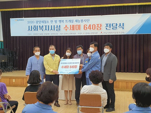 [¹Ìµð¾îÀü³² Á¦°¥´ëÁ¾ ±âÀÚ] ±¤¾ç½Ã´Â Æ÷½ºÄÚ ÇѶ¡Çູ ¶ß°³ÁúºÀ»ç´Ü¿¡¼ Áö³ 23ÀÏ Á÷Á¢ ¸¸µç ¼ö¼¼¹Ì¸¦ »çȸº¹Áö½Ã¼³¿¡ Áö¿øÇÏ´Â Àü´Þ½ÄÀ» °¡Á³´Ù°í ¹àÇû´Ù. Á߸¶³ëÀκ¹Áö°ü¿¡¼ ¿¸° Àü´Þ½Ä¿¡´Â ±¤¾ç½Ã ¹Ú¹®¼ö °æÁ¦º¹Áö±¹Àå, Æ÷½ºÄÚ ÀÌ¡¦