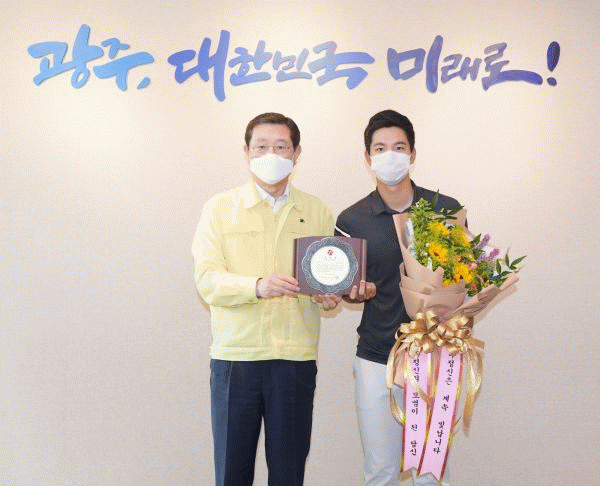 [¹Ìµð¾îÀü³² Á¦°¥´ëÁ¾ ±âÀÚ] À̿뼷 ±¤ÁÖ±¤¿ª½ÃÀåÀº 24ÀÏ ¿ÀÀü Á¢°ß½Ç¿¡¼ ÃÖ±Ù À§±ÞÇÑ »óȲ¿¡¼ ¼ÒÁßÇÑ »ý¸íÀ» ±¸ÇÑ È«»óÁØ ¾¾¿¡°Ô ¡®ÀÇ·Î¿î ½Ã¹Î»ó¡¯À» ¼ö¿©Çß´Ù. È£³²´ëÇб³ ½ºÆ÷Ã÷·¹ÀúÇаú¸¦ Á¹¾÷Çϰí Çѱ¹ÇÁ·Î°ñÇÁÇùȸ Åõ¾îÇÁ·Î·Î¡¦