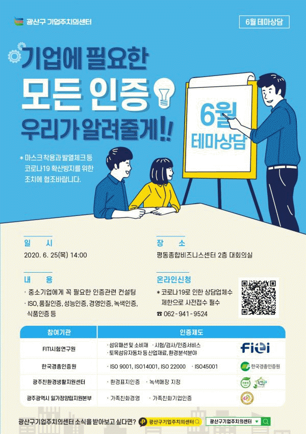 [¹Ìµð¾îÀü³² ±èÁ¤¿ì ±âÀÚ] ±¤»ê±¸°¡ ±¤»ê±¸±â¾÷ÁÖÄ¡ÀǼ¾ÅÍ¿Í 25ÀÏ Æòµ¿Á¾ÇÕºñÁî´Ï½º¼¾ÅÍ¿¡¼ Áß¼Ò±â¾÷¿¡ ²À ÇÊ¿äÇÑ ÀÎÁõÁ¦µµ¿¡ ´ëÇÑ Å׸¶ »ó´ãÀ» ½Ç½ÃÇÑ´Ù. ±¤»ê±¸ÀÇ Å׸¶ »ó´ãÀº, ¸Å¿ù Áß¼Ò±â¾÷°ú ¼Ò»ó°øÀο¡°Ô ±ä¿äÇÑ ÄÁ¼³ÆÃÀ» ¼öÃ⡤¡¦