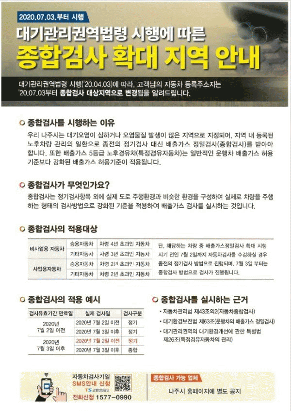 [¹Ìµð¾îÀü³² ¹Úº¹»ê ±âÀÚ] Àü¶ó³²µµ ³ªÁֽô ȯ°æºÎÀÇ ´ë±â°ü¸®±Ç¿ª ÁöÁ¤¿¡ µû¶ó ¿À´Â 7¿ù 3ÀϺÎÅÍ ±âÁ¸ ÀÚµ¿Â÷ Á¤±â°Ë»ç¿¡¼ °ÈµÈ ÀÚµ¿Â÷ Á¾Çհ˻縦 Àüȯ ½ÃÇàÇÑ´Ù°í 23ÀÏ ¹àÇû´Ù. ½Ã¿¡ µû¸£¸é ȯ°æºÎ´Â Áö³ 4¿ù 3ÀÏ ¡®´ë±â°ü¸®±Ç¡¦
