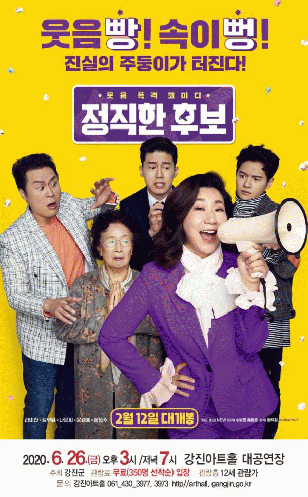 [¹Ìµð¾îÀü³² Á¦°¥´ëÁ¾ ±âÀÚ] °Áø¾ÆÆ®È¦¿¡¼ ¿µÈ ¡®Á¤Á÷ÇÑ Èĺ¸¡¯¸¦ ¿À´Â 26ÀÏ ¿ÀÈÄ 3½Ã¿Í ¿ÀÈÄ 7½Ã ÃÑ 2ȸ¿¡ °ÉÃÄ »ó¿µÇÑ´Ù. ¿µÈ ¡®Á¤Á÷ÇÑ Èĺ¸¡¯´Â °ÅÁþ¸»ÀÌ Á¦ÀÏ ½¬¿î 3¼± ±¹È¸ÀÇ¿ø ¡®ÁÖ»ó¼÷¡¯ÀÌ ¼±°Å¸¦ ¾ÕµÐ ¾î´À ³¯ ÇÏ·ç¾ÆÄ§¿¡ ¡¦