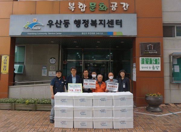 [¹Ìµð¾îÀü³² ±èÁ¤¿ì ±âÀÚ]Áö³ 11ÀÏ ±¤»ê±¸½Ã¼³°ü¸®°ø´Ü Á÷¿ø ºÀ»ç´Üü ¡®Çູ°ø°¨µ¿ÇàºÀ»ç´Ü¡¯ÀÌ ¿ì»êµ¿ °í¿±Á¦Á÷´É°æ·Î´ç °¡½º·¹ÀÎÁö¸¦ ±³Ã¼ÇØÁÖ°í ¾î¸£½Åµé °Ç°À» À§ÇØ »ý´ß 150¸¶¸®¸¦ Àü´ÞÇß´Ù. 2015³â °á¼ºµÈ Çູ°ø°¨µ¿ÇàºÀ»ç´Ü¡¦